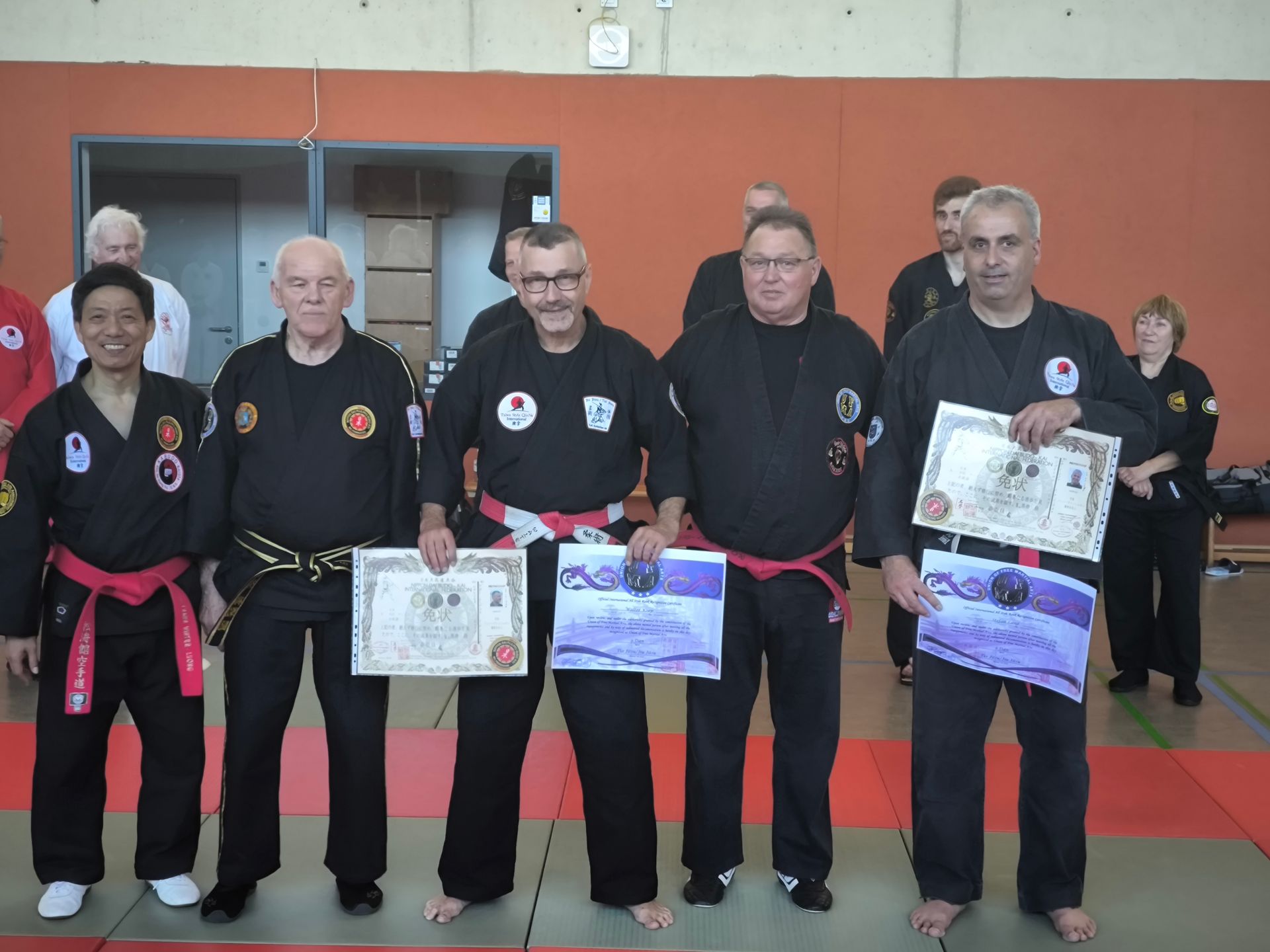 Die Urkunde und Ernennung wurden unter anderem verliehen an Walter Koep 9. Dan Tai Jitsu/ Jiu Jitsu und an Stefan Lang 8.Dan Tai Jitsu/Jiu Jitsu.